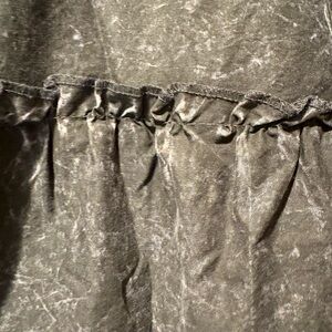 Chic distressed black maxi skirt. Features a tiered design. Comfortable and stylish for any occasion. Waist is 18” and stretches to 21”. 38” long. Size 3X