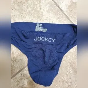Details: Navy blue Jockey men’s thong with wide logo waistband and minimal back coverage. Smooth stretch fabric with supportive front pouch and clean seams.