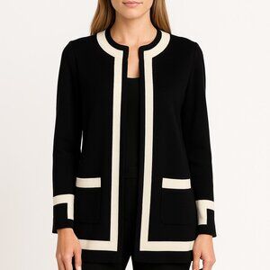 St. John Black White Open Front Long Sleeve Cardigan Sweater Womens Size 8 NWT
