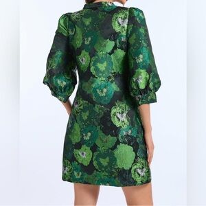 Chic jacquard elegant Green Floral Long Sleeve Dress New | Size M/L