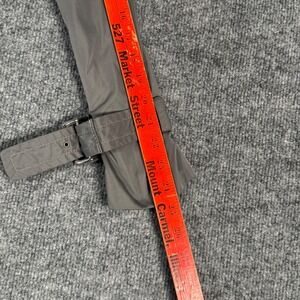 BCBGMAXAZRIA Ophelia trench coat in pewter. This stylish outerwear piece features a belted waist and sleeves, a ruffled back detail, and an asymmetrical hemline for a modern, dramatic flair. The interior lining provides a smooth feel against the skin. Perfect for a sophisticated evening out or a chic daytime ensemble.