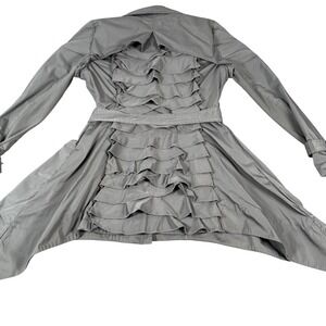 Whimsical BCBG Ophelia Small Belted Ruffle Trench Coat Asymmetrical Flared Hem