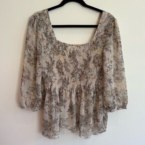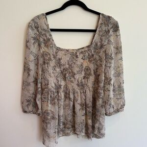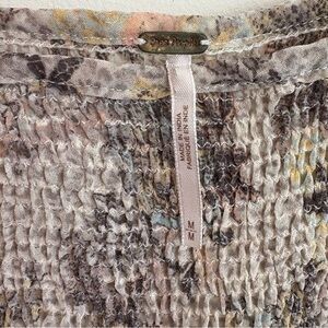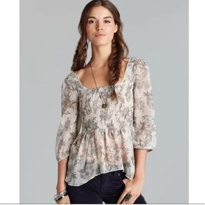 Free People Cream Tan Floral Ever After Blouse Medium Chiffon