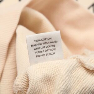 Color: Light beige / pale pink with black printed graphics.