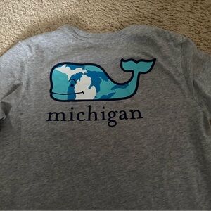 Experience comfort and style with this gray Vineyard Vines men's t-shirt. Michigan!