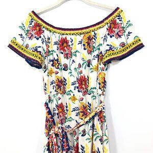 FLYING TOMATO Size M Hi Low Short Sleeve Off Shoulder Dress Flora Colorful Rayon