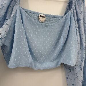 Style: Arula Top Women A 1X NEW Blue Cottagecore Lace Long Sleeve Cropped Puff Sleeves