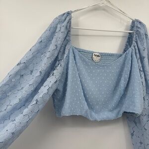 Arula Top Women A 1X NEW Blue Cottagecore Lace Long Sleeve Cropped Puff Sleeves
