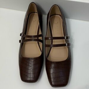 Journee Gredah Double Buckle Mary Jane Flats Brown Croc Print Size 8.5