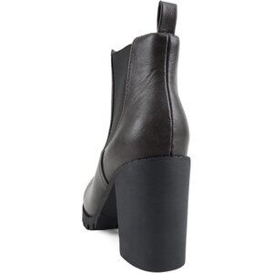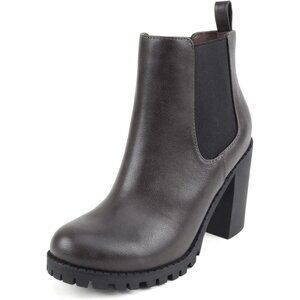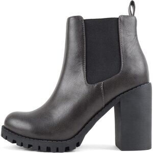 Women's Dark Grey Lug Sole Ankle Boot Elastic Gore Chunky Heel Bootie