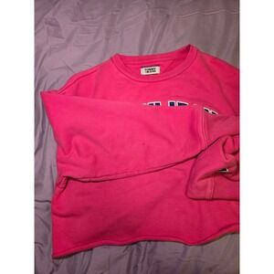 Tommy Jeans Cropped Sweatshirt Pink Blue College Logo Top