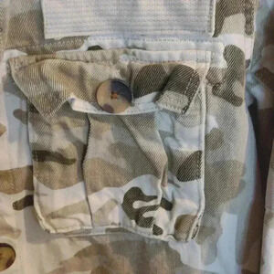 Bershka XS White/ Green and tan Camouflage Denim Cargo Jean Jacket