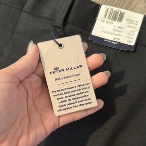 Elegant dress pants by Peter Millar. Perfect for formal occasions. Combines style and comfort. Color is called Mid Gray. New with tags. Excellent condition. These pants come unhemmed so they can be customized by the wearer to their desired length.