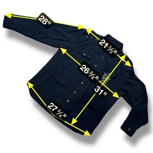 The shirt is in good used condition and ready to wear. The size tag and brand label is faded to where it can’t be read.