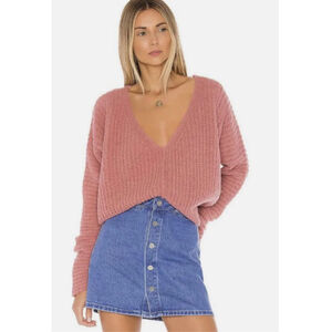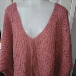 Women's Free People Pink Oversized V-Neck Sweater Size S