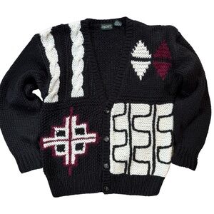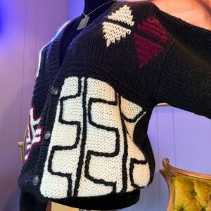 Absolutely LOVE this cardigan, but it’s just a little too large for what I had envisioned. I want someone else to have the opportunity to love it! Stylish Vintage cardigan with bold geometric patterns. Features a button-up front. Perfect for layering.
