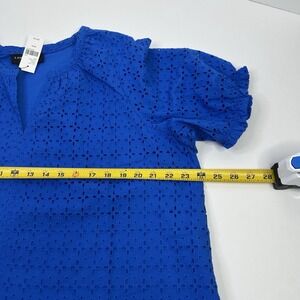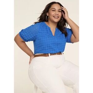 New with Tag LANE BRYANT Eyelet & Knit Notch V Neck Blouse WOMENS 14 / 16 SHORT SLEEVE Royal Blue