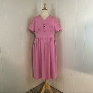 Jessakae Folk Lore Pink Midi Dress XXXL Short Sleeve V-Neck A-Line Cottagecore