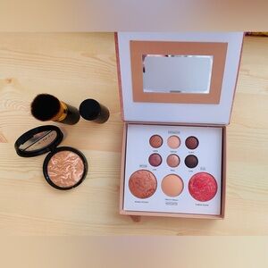 Enhance your look with this versatile blush and eyeshadow palette. Featuring a range of pink and brown shades, this palette is perfect for creating both subtle and bold looks. Includes a convenient mirror for on-the-go application. Kit includes applicator brush, baked facial powder compact in light and palette box. New, never used!