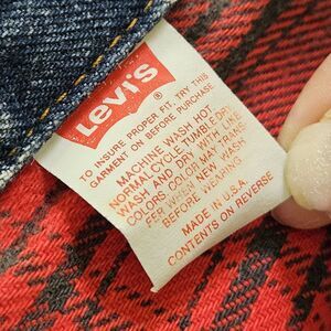 This vintage Levi's trucker jacket is a must-have for any fashion-savvy individual. The blue acid wash cotton fabric gives it a unique and stylish look that is perfect for casual occasions. The mid-length jacket features a buffalo plaid lining, adding an extra level of warmth and comfort.