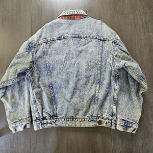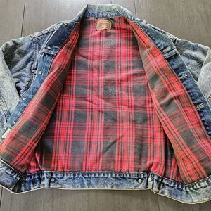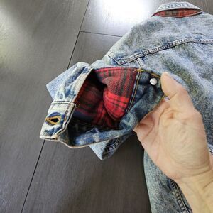 Vtg Levis 70417 9319 Blue Acid Wash Trucker Jacket Buffalo Plaid Lined Size M