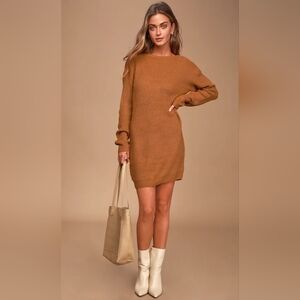 Lulus Women's Bringing Sexy Back Camel Backless Sweater Dress S