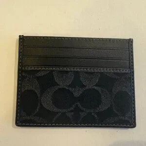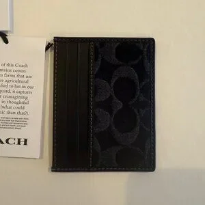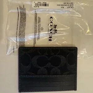 Coach Black Leather Signature C Denim SLIM ID Card Case Wallet CAJ47