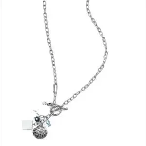 The Harbor Necklace is the perfect beachy accessory. This longer length, silver necklace features ocean-inspired charms with a unique toggle closure in the front. Pair with the matching Harbor Earrings to activate vacation mode.