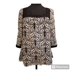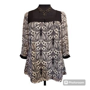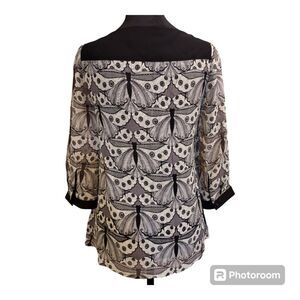 Express Black & White Silk Shell 3/4 Sleeve Butterfly Blouse Size XS