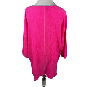 IC by Connie K Pink Crinkle Tunic Top Side Pocket Artsy Lagenlook size XL