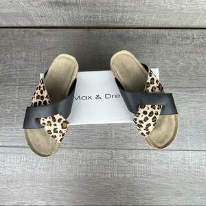 NIB Max & Drew sz 8 Amy sandals black leather leopard calfhair