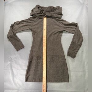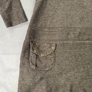 Elegant cowl neck design. Soft and comfortable fabric made from organic cotton, hemp, and spandex which allows for some stretch. Features stylish pocket detail. Please see photos for length. Great condition with no noticeable stains or tears.