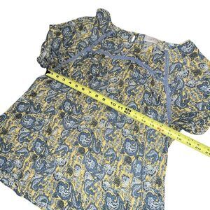 LOFT Blue & Yellow Paisley Short Sleeve Blouse Size L