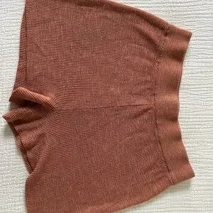 Cozy rust ribbed knit sweater set with shorts. Slouchy, oversized fit.