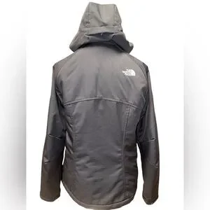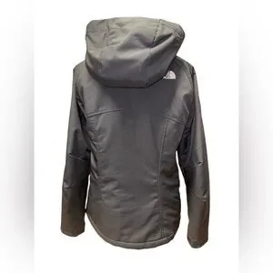 Stay warm and protected from the elements in this classic North Face softshell jacket. Designed with a water-resistant exterior, full-zip front, and adjustable hood, it’s perfect for everyday wear, hiking, or travel. Features include:
