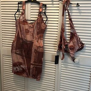 #010**Tan Money print dress ( M) Manifesting Money & Women Crop top
