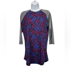 Jersey-style tee with gray sleeves & purple floral body. The colors in this are gorgeous!