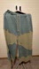 Comfortable wide leg pants with a unique two-tone design. Features a blend of prewashed fade grayish olive and tan. Distressing. Raw hem. Ideal for casual wear.