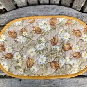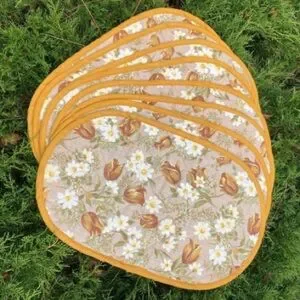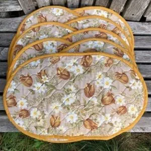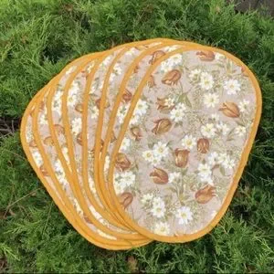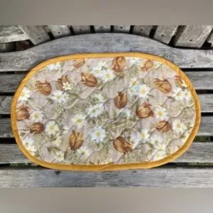 8 VINTAGE Quilted Daisy White Yellow Green Brown Tan Floral Placemats