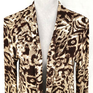 Chicos Travelers Animal Print Jacket 1 Size Medium Women's Beige Brown Stretch Knit