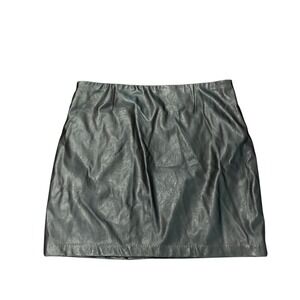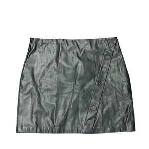 I.N.C Womens Faux Leather Wrap A-line Skirt Black Button Details Stretchy Sz M