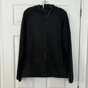 Stay protected and stylish with this sleek black windbreaker. Perfect for any outdoor adventure.
