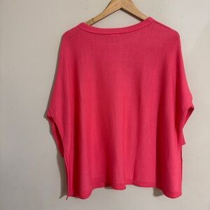 Cozy oversized sweater in a vibrant pink color. Features a relaxed fit with two front pockets.