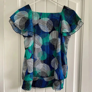 Dress Barn Square Neck Flutter Sleeve Banded Bottom Blouse