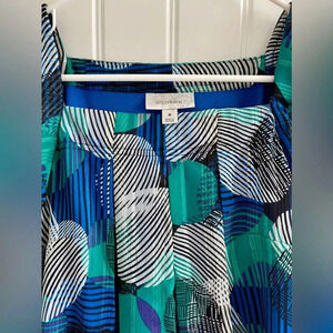 Blue, Green & White Abstract Pattern with Subtle Metallic Threading