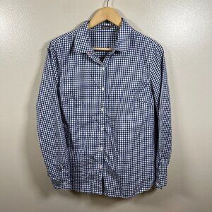 J.Mclaughlin Gingham Button Up Shirt Size 14 Blue Cotton Preppy Work Office