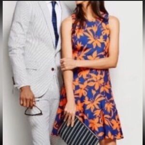 J. Crew Fit and Flare Sleeveless Lightweight Cocktail Dress Blue + Orange size 4