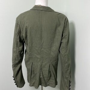 Free People Cinched Waist Linen Blend Blazer Olive Green