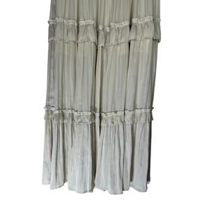 NWT Aqua Cream Ivory A-line Silky Satin Side Zipper Ruffled Maxi Skirt Size S
