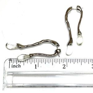 Front back, Drip Drop Earrings in Silver with clear lucite drops. We also have them in Gold Tone. Dewy drops of hand-carved Lucite catch light at the base of these organic-inspired ear jackets.